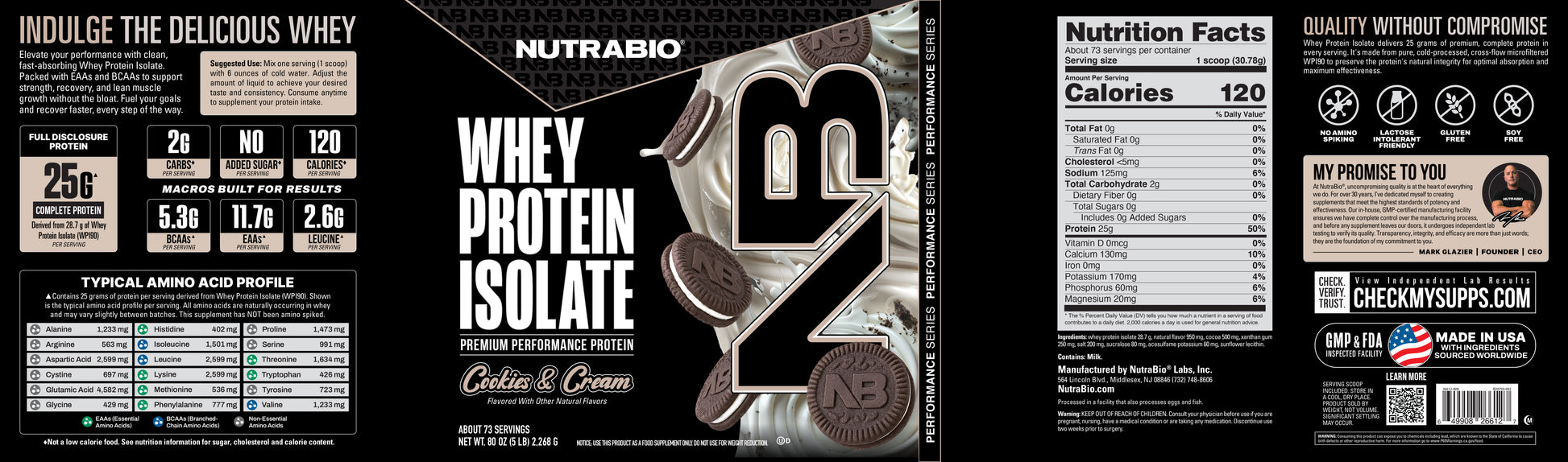 High-quality whey protein with a full spectrum of essential amino acids, including BCAAs and glutamine precursors, for fast repair and recovery, in delicious award-winning flavors.